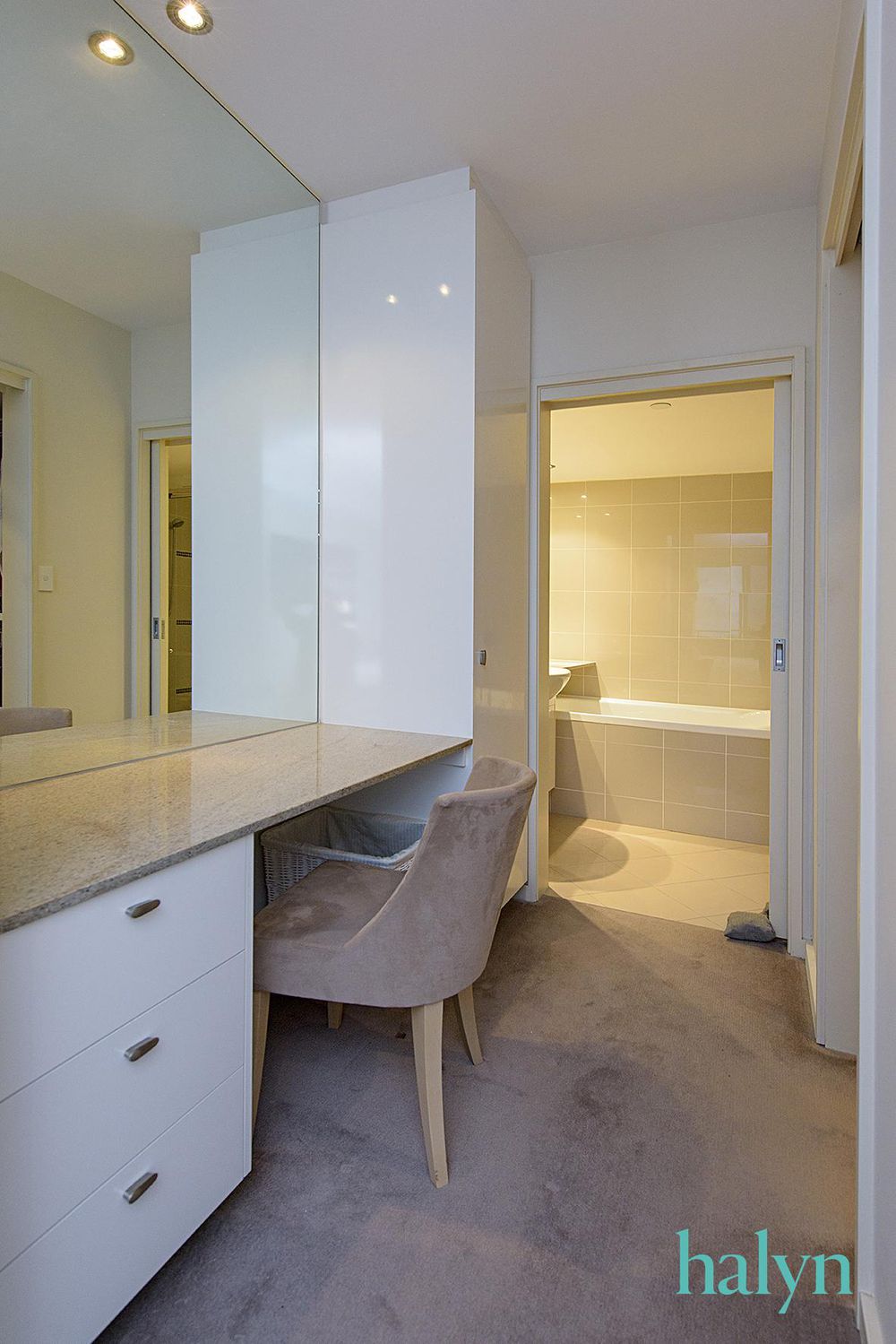 - Stylish bench tops with glass splash backs