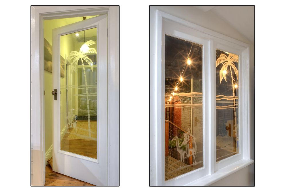 Original etched glass doors.