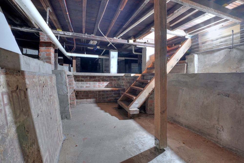 Cellar with trapdoor and ladder.