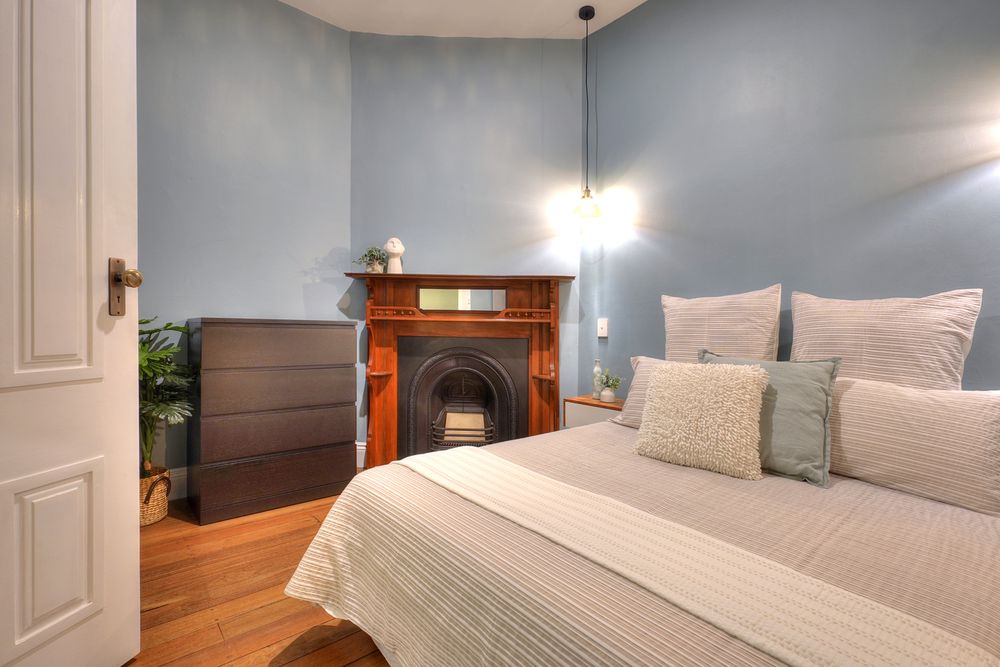 Master bedroom built-in-robe and original fireplace.