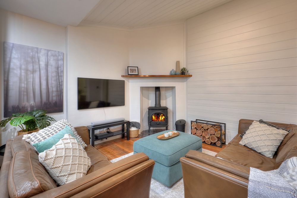 Let's start with the Master Bedroom complete with an original fireplace, built-in wardrobe and en-suite bathroom with under-floor heating. The enormous second bathroom has a separate shower recess, a bath, under-floor heating and has the original shiplap on the wall. The 3rd bedroom/home office overlooks the rear garden and the dedicated laundry has plenty of storage space and adjoins the kitchen.
