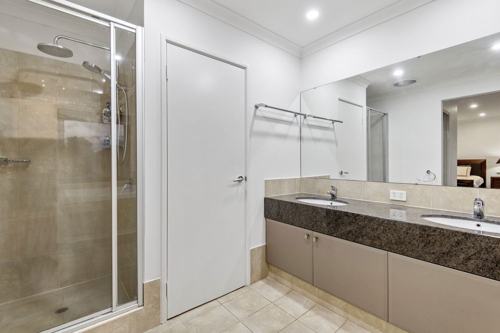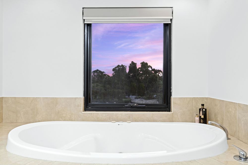 The bedrooms are spacious and well-appointed, with built-in wardrobes and plush carpeting. The bathrooms are generous and conveniently positioned. A luxurious bath offers stunning views of the naturescape outside.