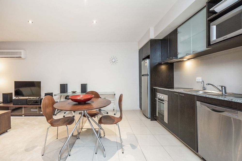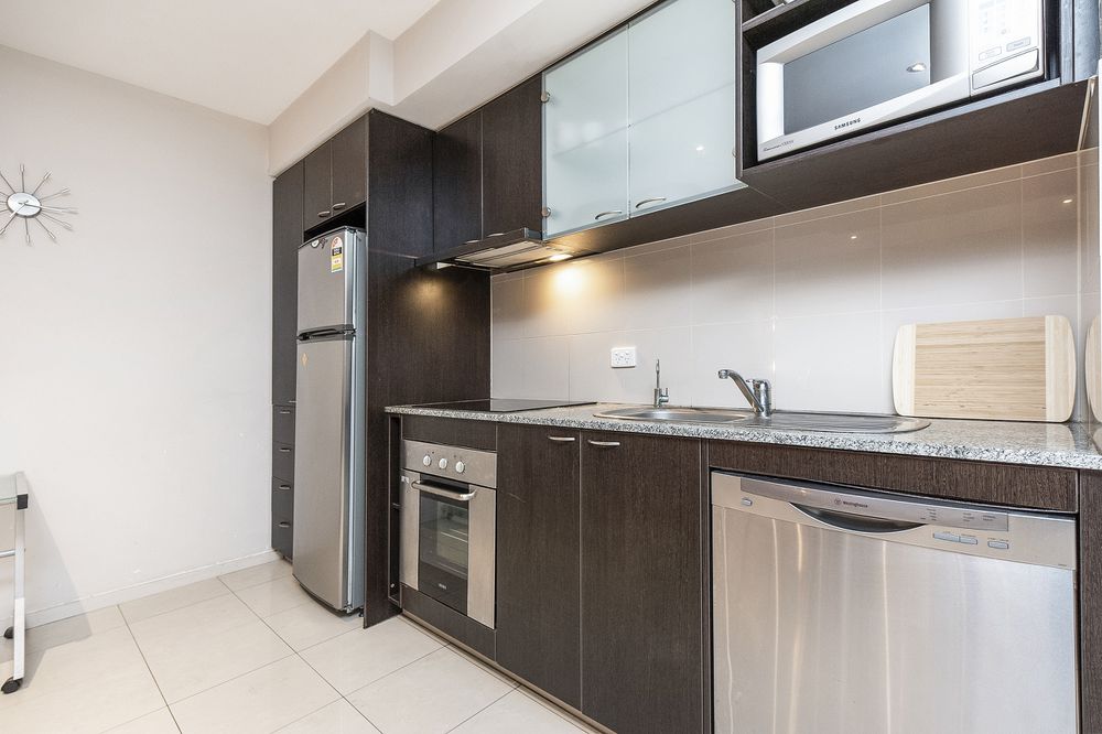 The kitchen is equipped with quality appliances, ample storage space, and a sleek design that will inspire your inner chef. Whether you enjoy cooking for yourself or hosting dinner parties, this kitchen has everything you need! The bedroom is generously sized and features built-in wardrobes, providing plenty of storage space for your belongings. The attached bathroom is modern and stylish, with a shower and a vanity unit.
