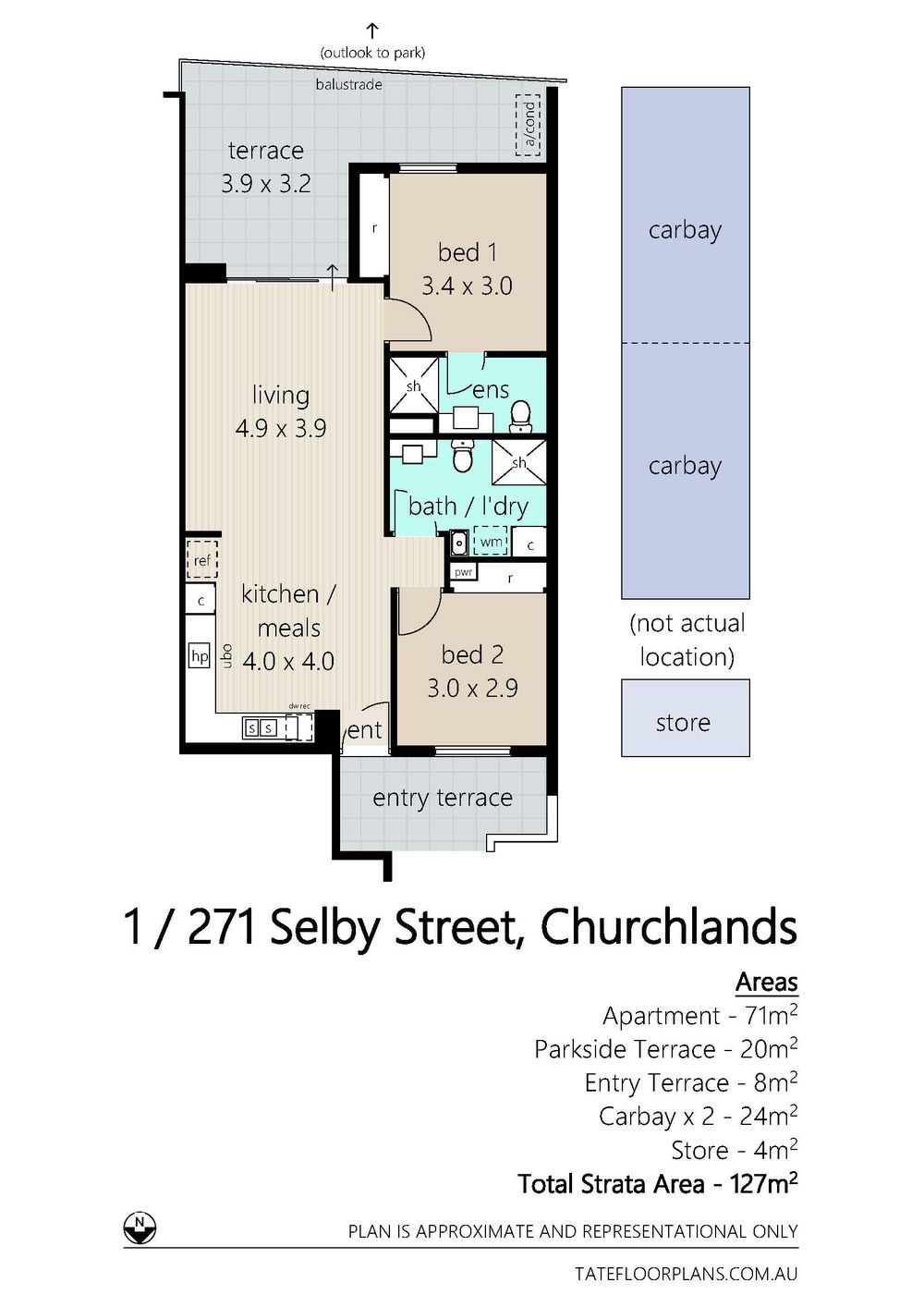 • Generous 71sqm of internal living, 20sqm entertainer's terrace that overlooks the park, 8sqm terrace at the front entrance, secure underground parking for 2 cars (tandem) plus a separate 4sqm private storeroom
