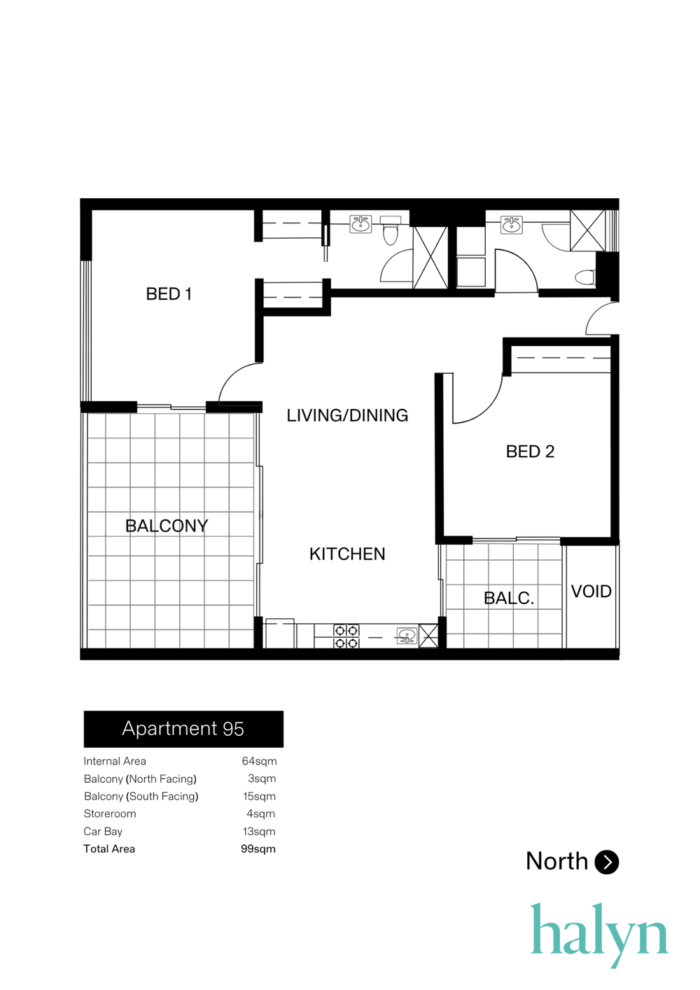 - 15sqm South facing & a 3sqm North facing balcony