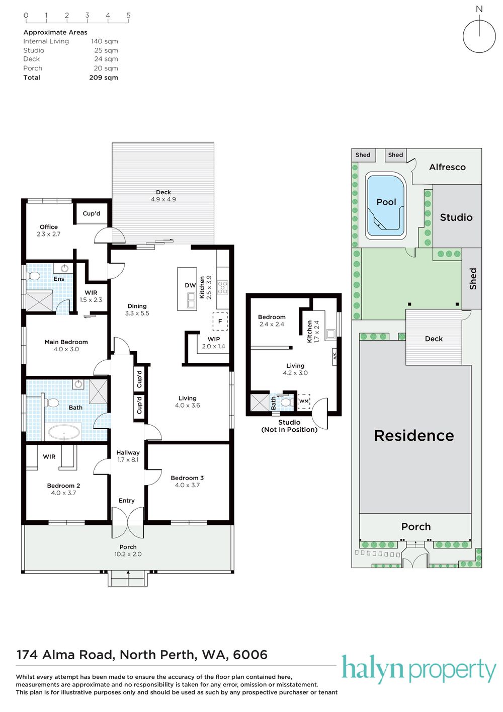 - Main House - 140sqm of internal living with 3 bedrooms, 2 bathrooms and separate study/kids retreat